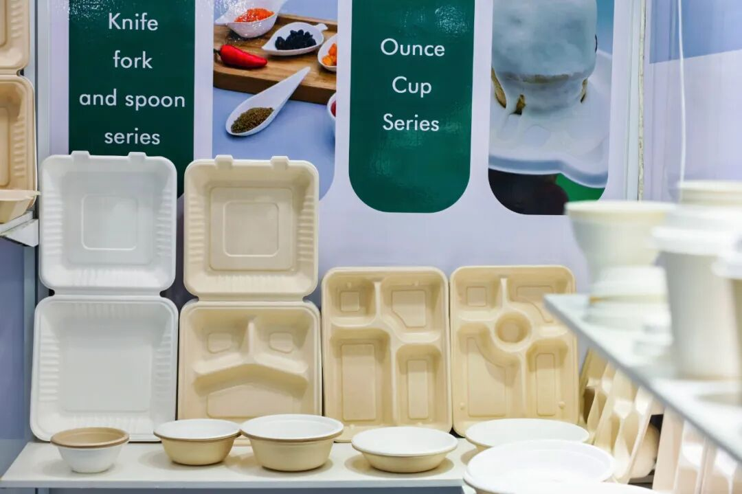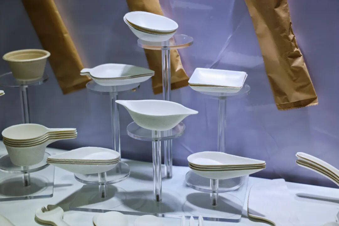 顺邦农机、天美生态科技、立壹生物科技、新飞材料、大胜达、建发纸业、奥利新材料、森创包装、迪乐 - 美万邦、注礼智控、圣泉、谷芮环保、稻香环保、厚朴科技、凯成科技、山与新材、森友包装、绿笛青青、潮流工匠、超帆纸制品以及绿林金新材料等,携各自精心打造的各类爆款餐包制品惊艳亮相,从简单实用的基础造型到复杂精细的艺术设计,展现出无限可塑性。